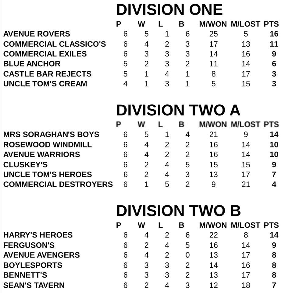 Division One league leaders Avenue Rovers travelled to play Uncle Tom’s Cream in the Tuborg Dundalk Pool League on Monday night.